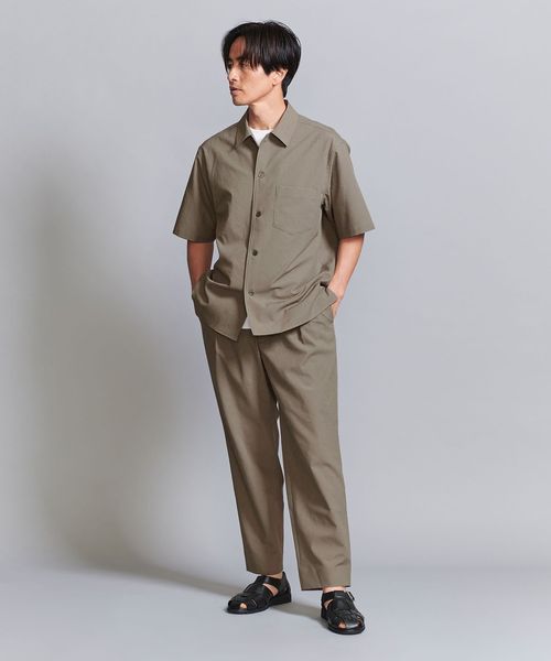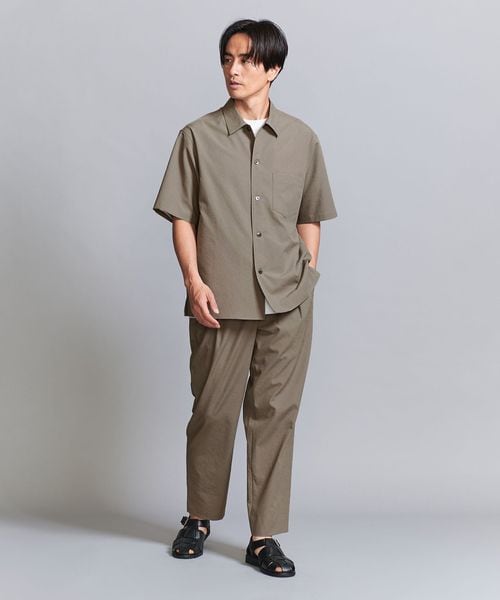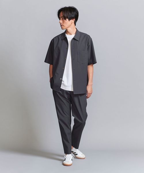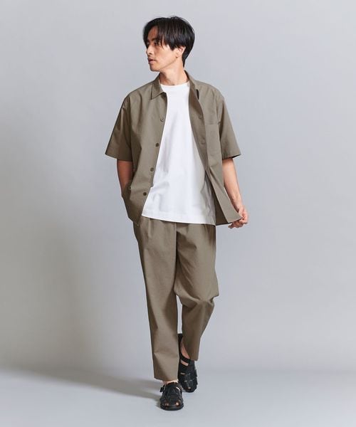 清涼感のある生地なので、他のアイテムでも軽めの生地感のものを合わせると、統一感が出てバランス良くまとまります。