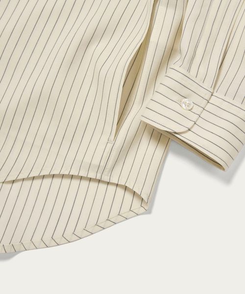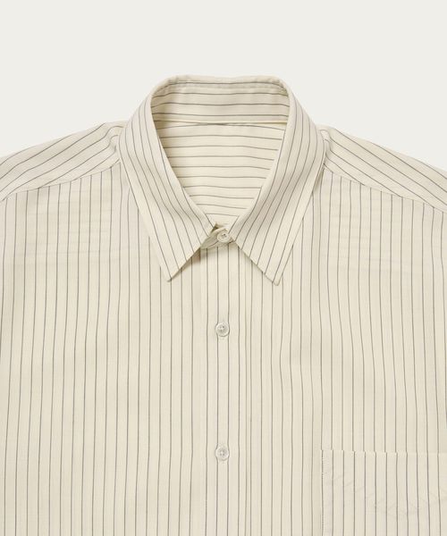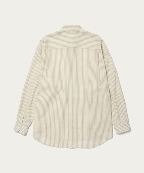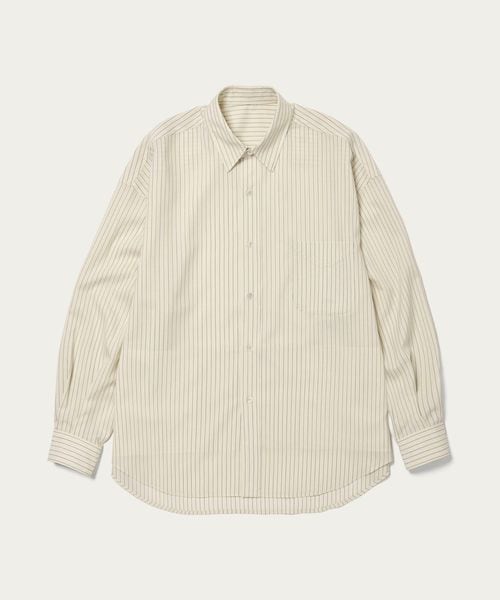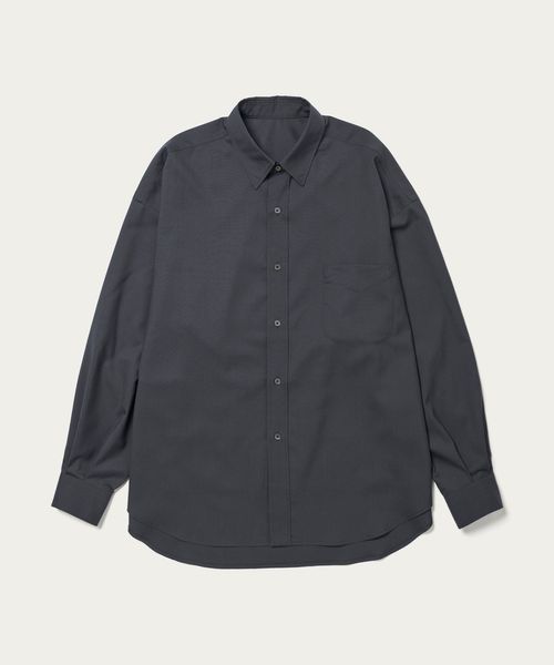ほど良いワイドシルエットのため一枚でキレイ目に着れるシャツです。
