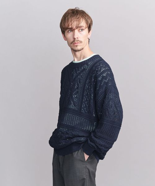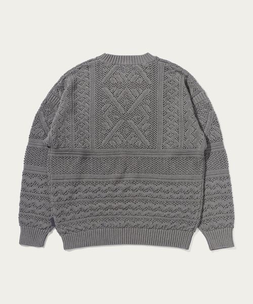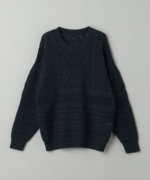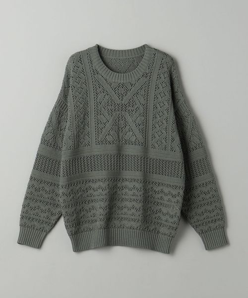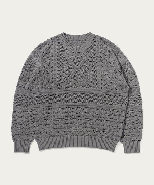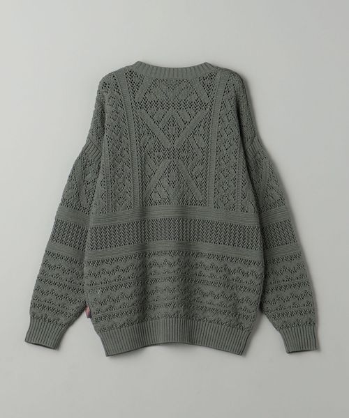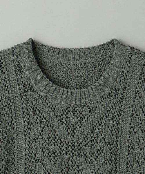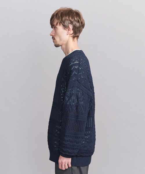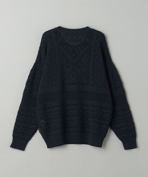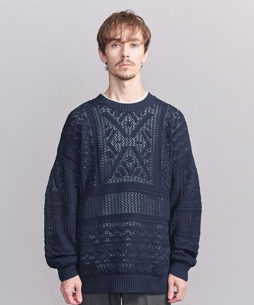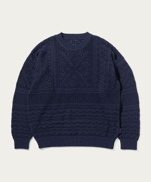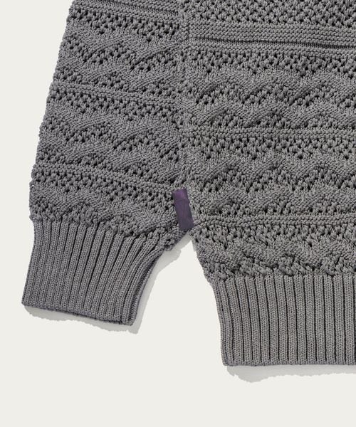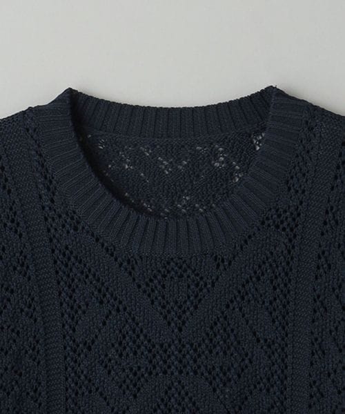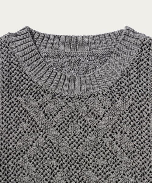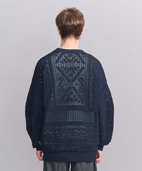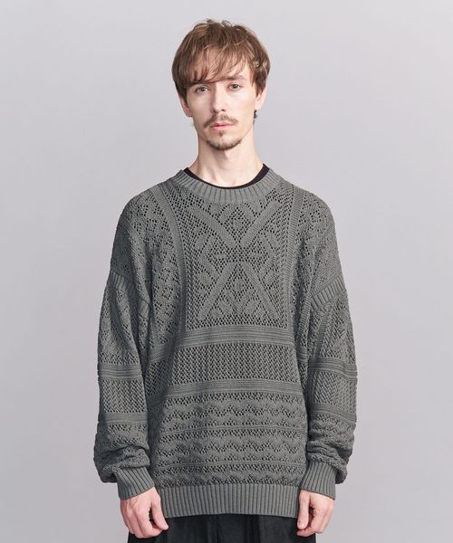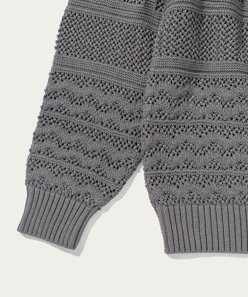 ほどよい透け感のあるメッシュ調の編地と90'sのアウトドアアーカイブから着想した民族調の柄がポイント。