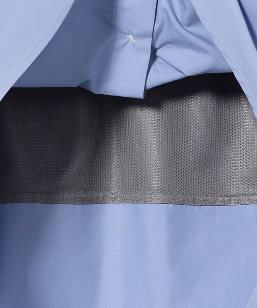 COOLMAX素材のタイプライターを使用したベンチレーション付きボタンダウンシャツです。