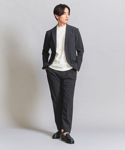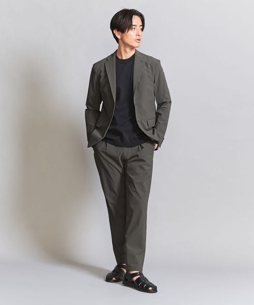同生地のテーパードパンツを合わせた、セットアップスタイルがおススメです。