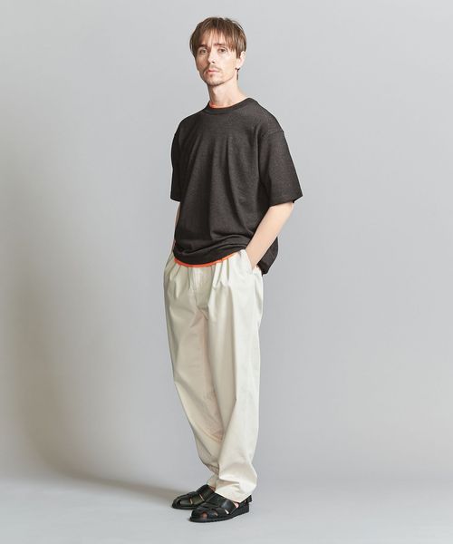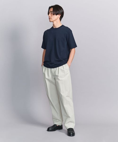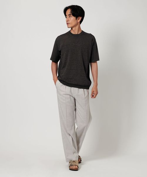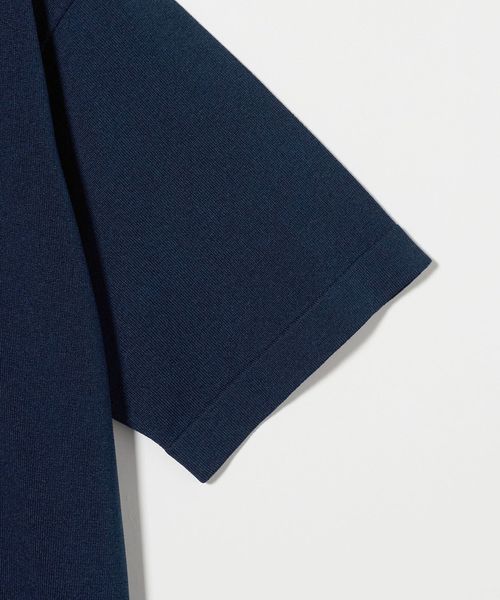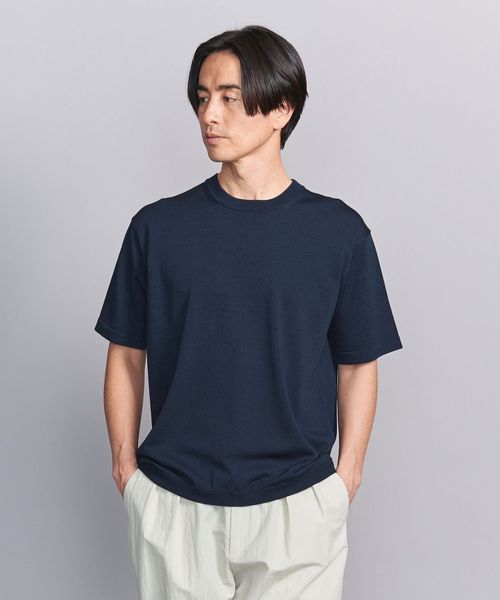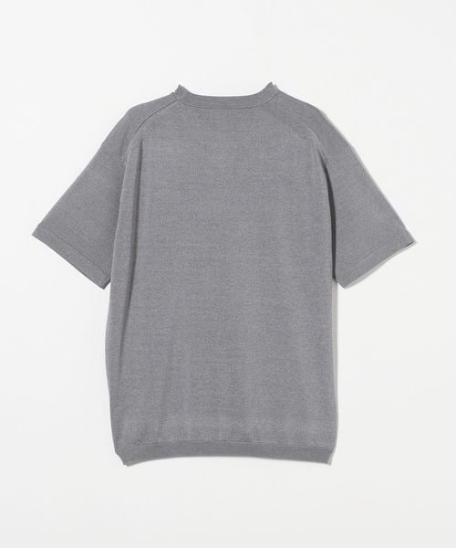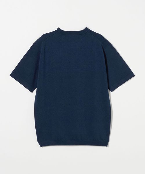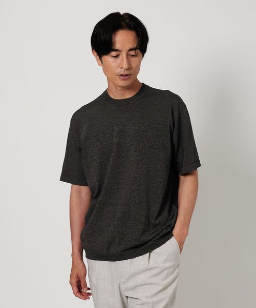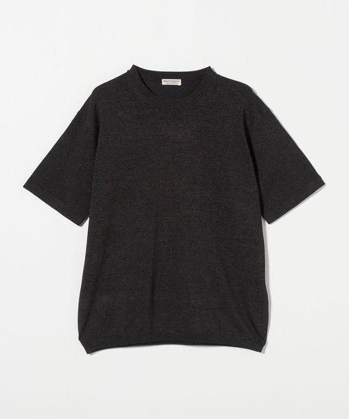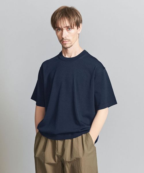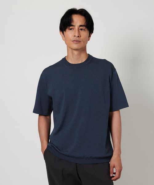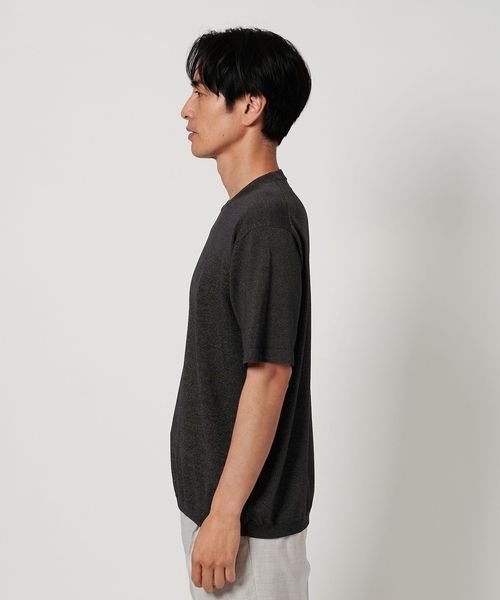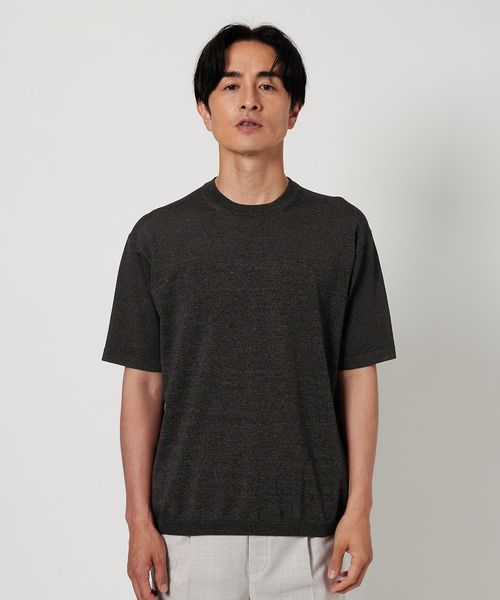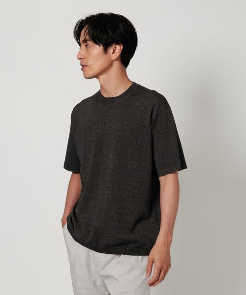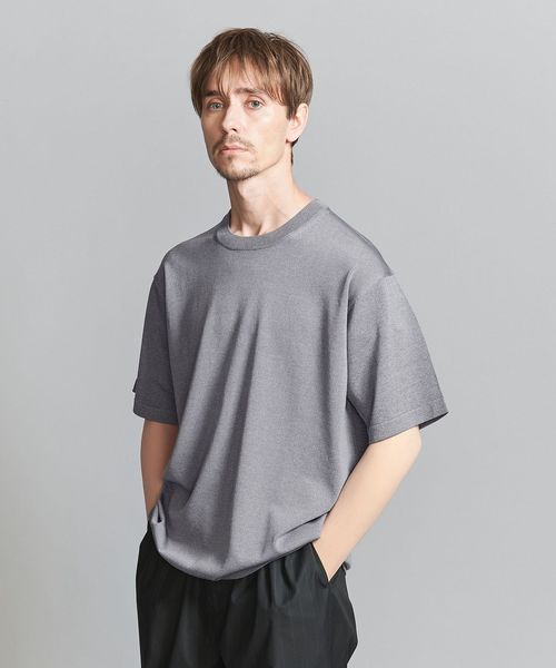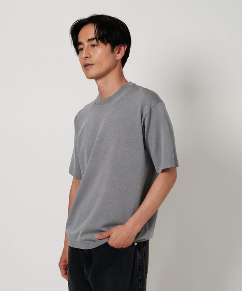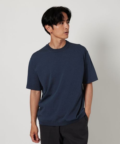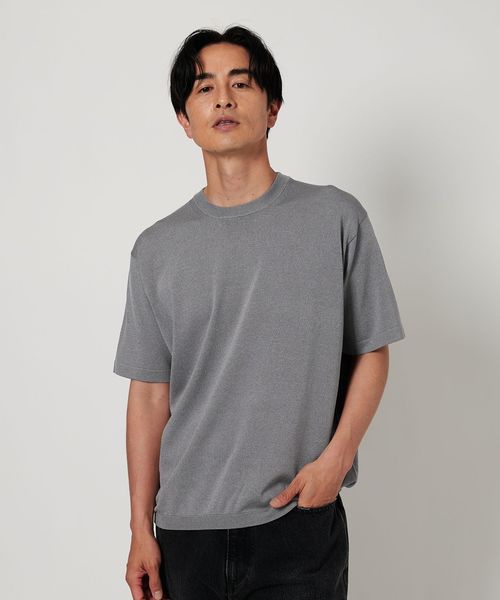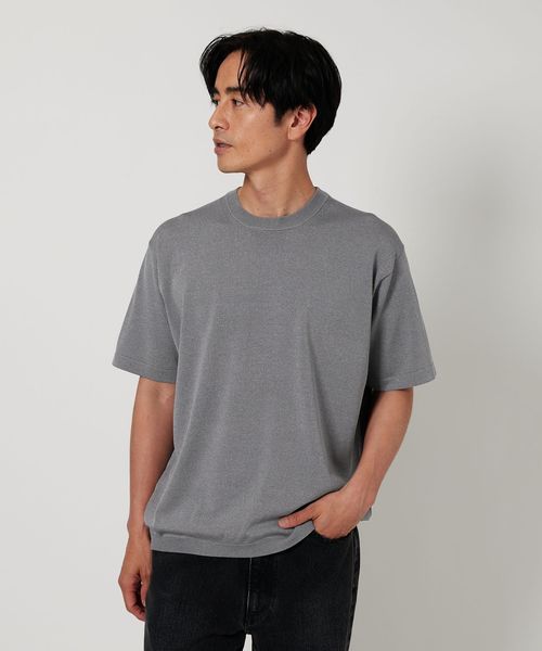 独特なフェード感と光沢のあるカラーリングが魅力的な半袖ニットTシャツ。