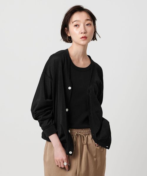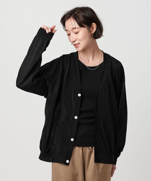 煌めくシアー素材を使った丸味のあるシルエットのカーディガン