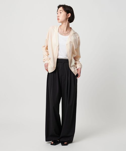 シンプルなデザインなので使い勝手も良くシアー感があるのでインナーとのレイヤードを楽しめる一着です。