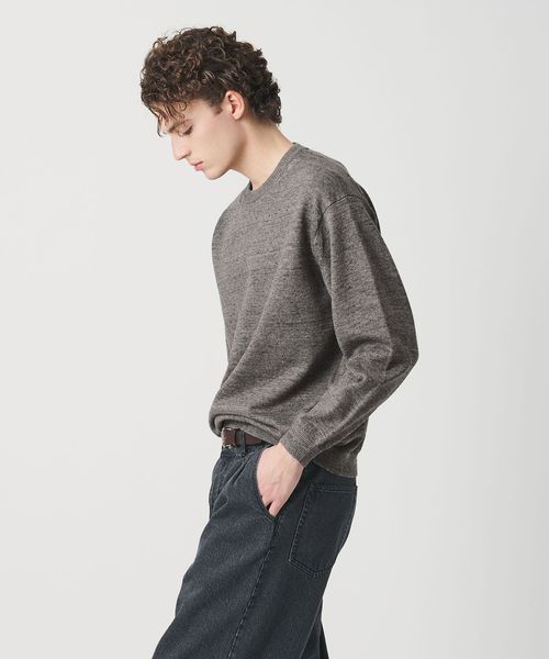 スウェットのようなしっかりとしたボディとハリのあるシルエットが特徴のハイゲージリネンニットトップスです。