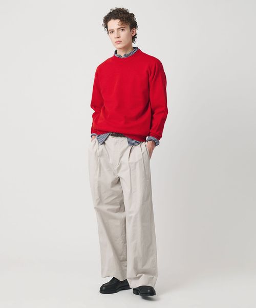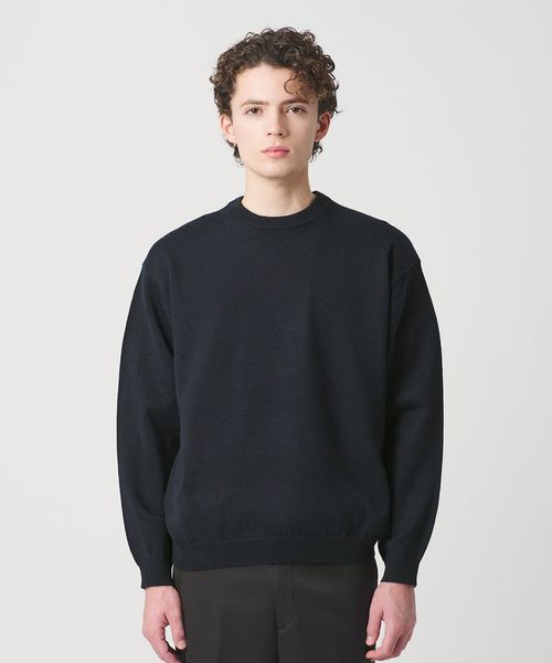 通常のクルーネックより太目の衿巾に設定し、モックネックほど高くはないものの存在感のあるクルーネックデザイン。