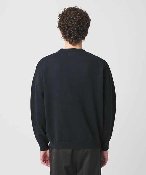 アームホールや袖回りにはニット特有の減らし目デザインが入っており、スウェットライクなシルエットとニットならではのディテールが共存したハイブリッドなボディが特徴です。
