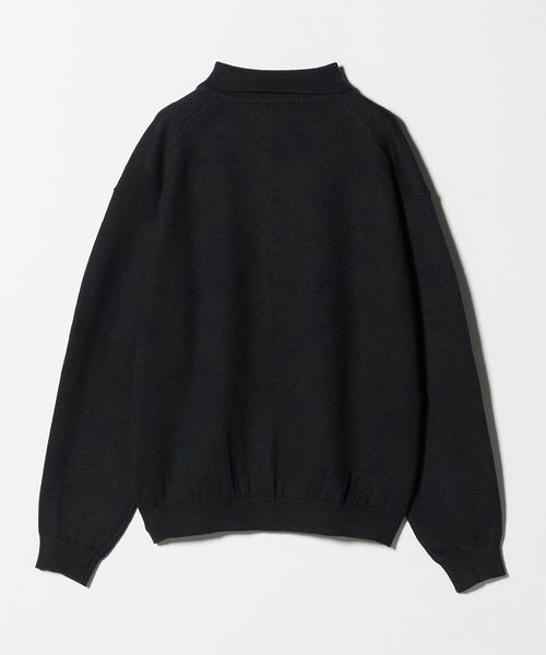 アームホールや袖回りにはニット特有の減らし目デザインが入っており、ブルゾンライクなシルエットとニットならではのディテールが共存したハイブリッドなボディが特徴です。