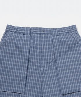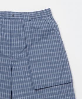 清涼感のあるオリジナルチェック柄のシャツ地を用いたハーフパンツ。
