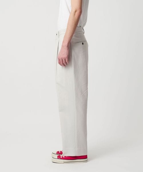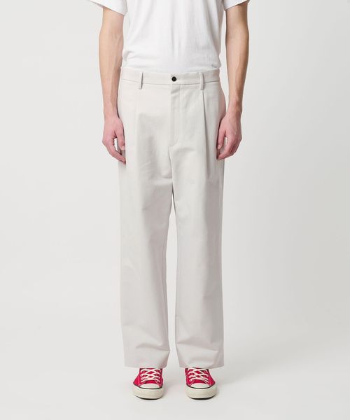 程よくゆとりを持たせたワイドシルエットに、弱めのテーパードを効かせたスラックス。