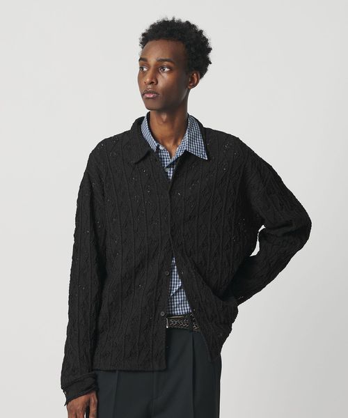ハンドニットのアーカイブから着想を得たリーフパターンを編み柄に落とし込んだニットシャツ。