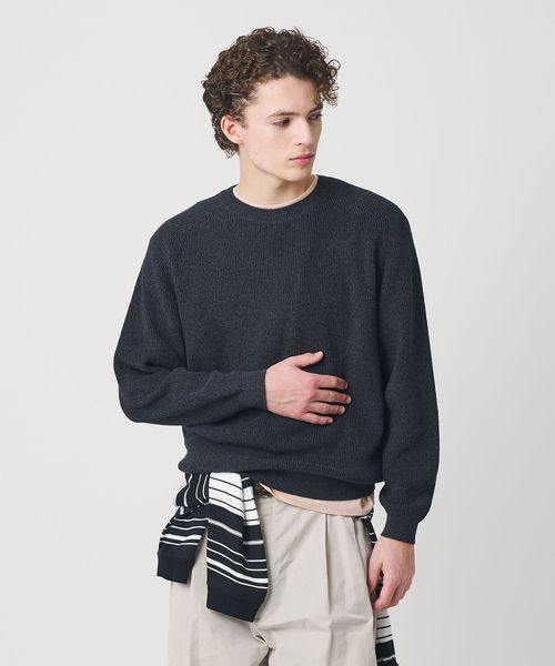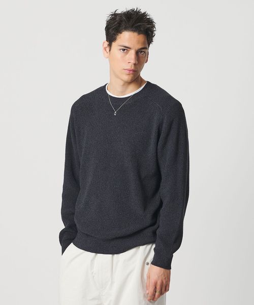 コットン×アクリルの混紡素材を使用した、クリーンな表情のニット。