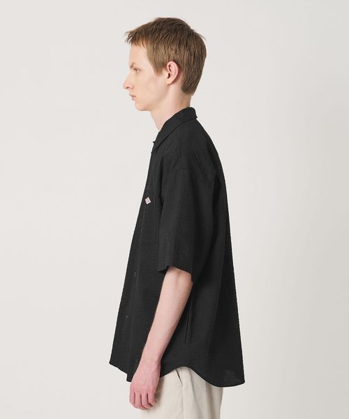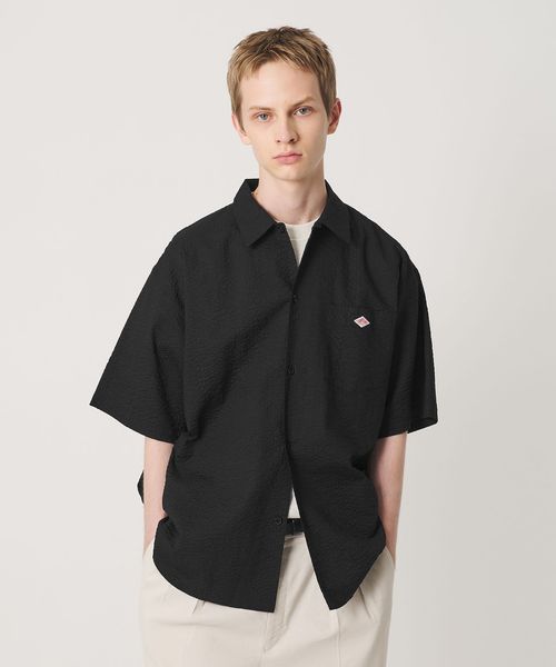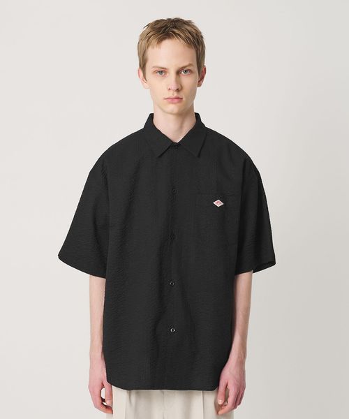 清涼感のあるシアサッカー素材を使用したワンポイントロゴシャツ。