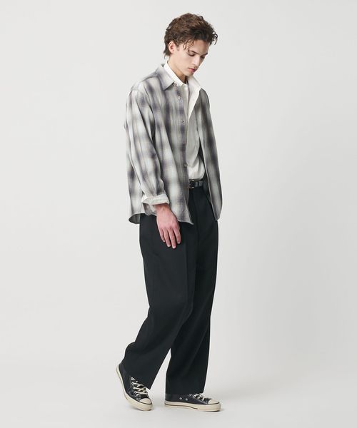 スラックスと合わせて、BEAUTY&YOUTHらしいクリーンな印象のネルシャツスタイルがおすすめです。