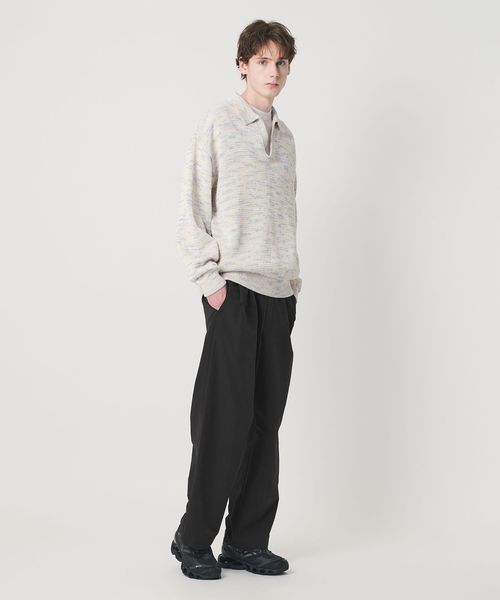 シャツ、スウェット、ニットなど、幅広いトップスと相性の良い万能パンツ。