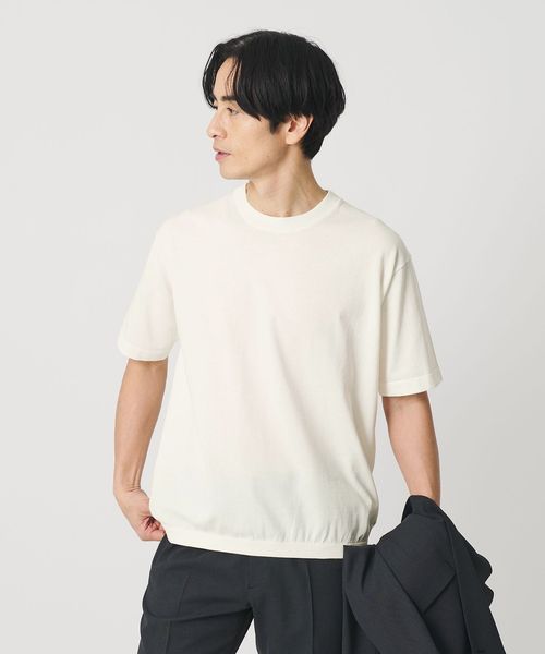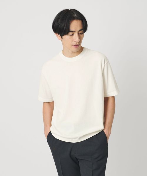 洗練された上品なカジュアルスタイルが叶う、クリーンなルックスの定番ニットTシャツ。