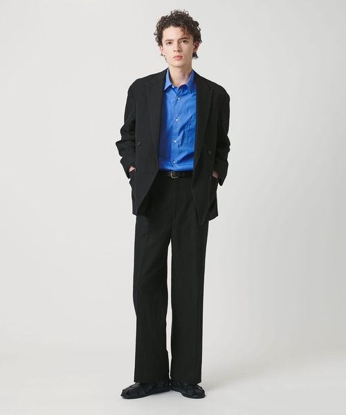 同素材のスラックスとのセットアップスタイルはもちろん、単品使いではワイドストレートのスラックスやクリーンな印象のデニムとの組み合わせがおすすめ。