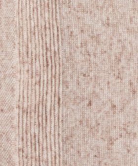 リネンとポリエステルをブレンドした素材を採用し、ナチュラルな風合いと、ニットならではの安定した着心地を両立しています。