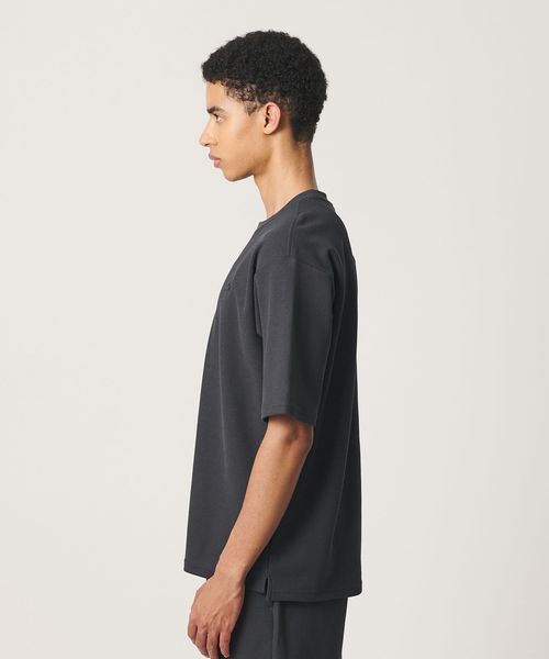鹿の子とは異なる繊細な表情が魅力のニットライクなジャージ素材を採用し、カジュアルになりがちなアイテムを上品な印象に仕上げています。