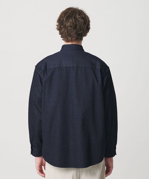 シンプルで無駄のないデザインに加え、身幅にゆとりを持たせたリラックスシルエットで仕上げることで、デイリーに取り入れやすく、幅広いスタイリングに馴染む羽織シャツとなっています。