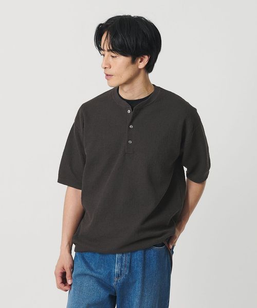 ヘンリーネックの程よいアクセントがシンプルなスタイリングにも馴染みやすく、幅広いアイテムと相性のよいトップスです。
