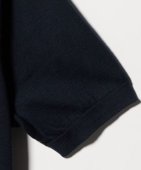 短袖仕様ながらニットらしい立体感とリブ仕立てのトリムがほどよいクラシック感を演出。