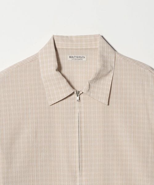 シャツブルゾン型のデザインを取り入れたジップシャツ。