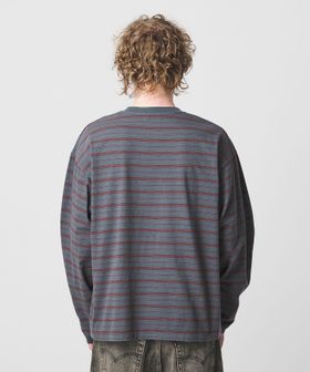 オルタネイトボーダー ボリュームスリーブ クルーネック カットソー