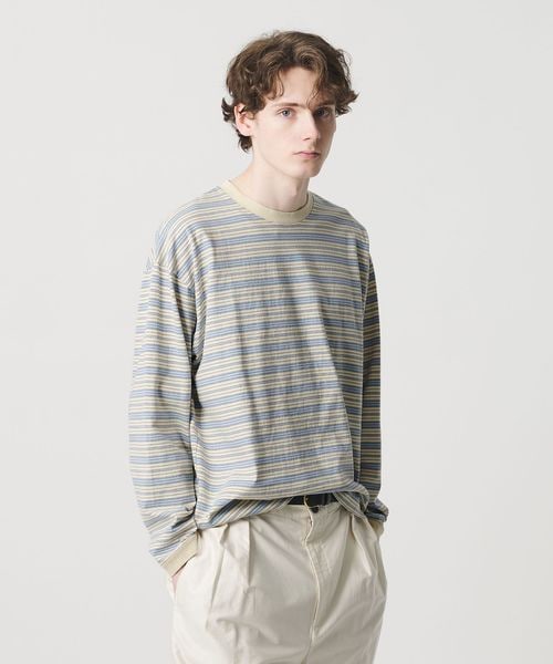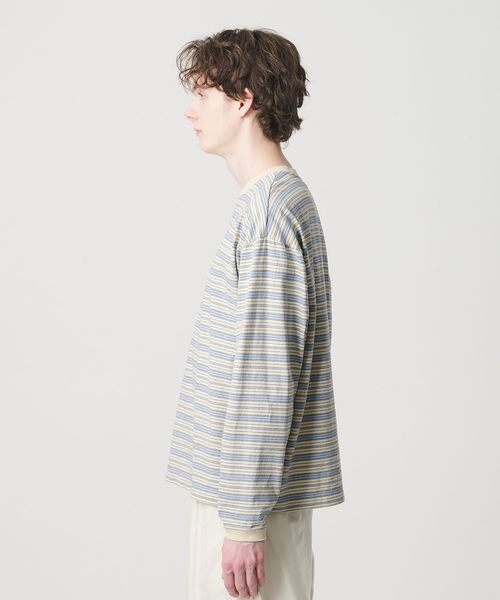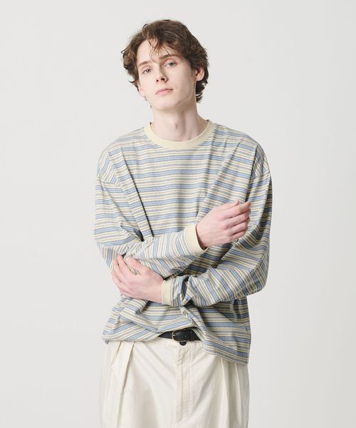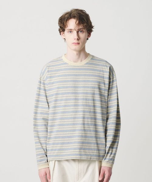 オルタネイトボーダー ボリュームスリーブ クルーネック カットソー