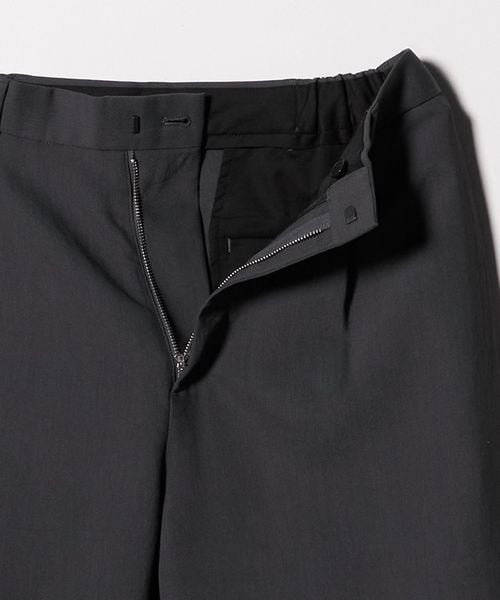クリーズなしのワンタックがほどよい抜け感を演出し、黒・グレーのミニマルな色展開でモダンな雰囲気に。