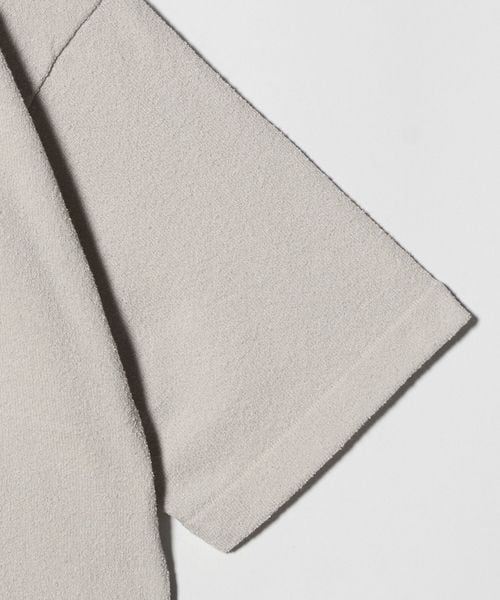 コットンをベースとしたブークレ糸を表側に、安定感の出るポリエステル糸を裏側に使いプレーティング編みで仕上げたボディ。