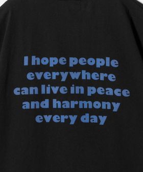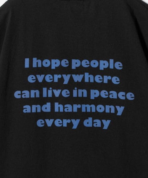 フロントの「Peace always」ロゴが程よいアクセントになる、シンプルながら存在感のあるグラフィックTシャツ。
