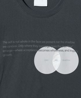 フロントに配したグラフィックとメッセージが印象的なプリントTシャツ。