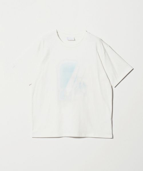 淡いトーンのグラフィックをフロントに配した、ミニマルな表情のプリントTシャツ。