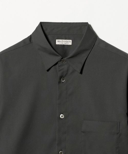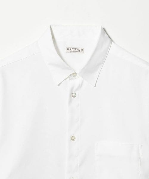 きれいめな双糸使いのピンオックス生地を採用し、ほどよいハリと上品な光沢が、シャツスタイルに高級感を添えます。