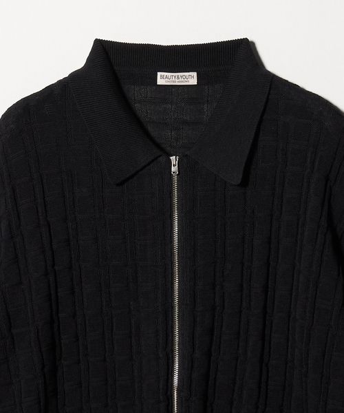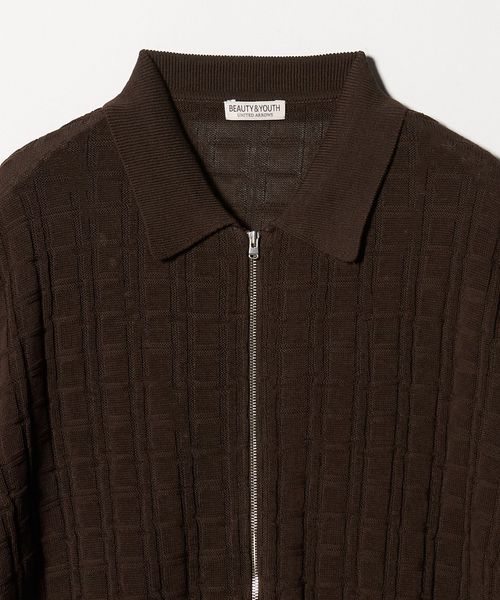 ジャガード フルジップ ショートスリーブ ポロニット ウォッシャブル