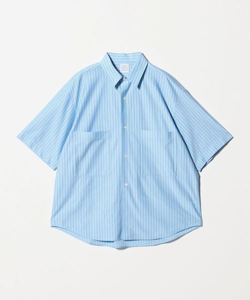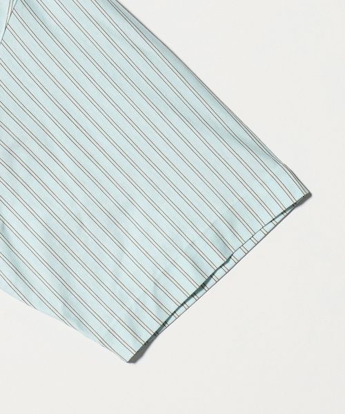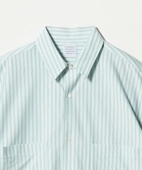 オーセンティックなストライプ柄が印象的な、レギュラーカラーのハーフスリーブシャツ。