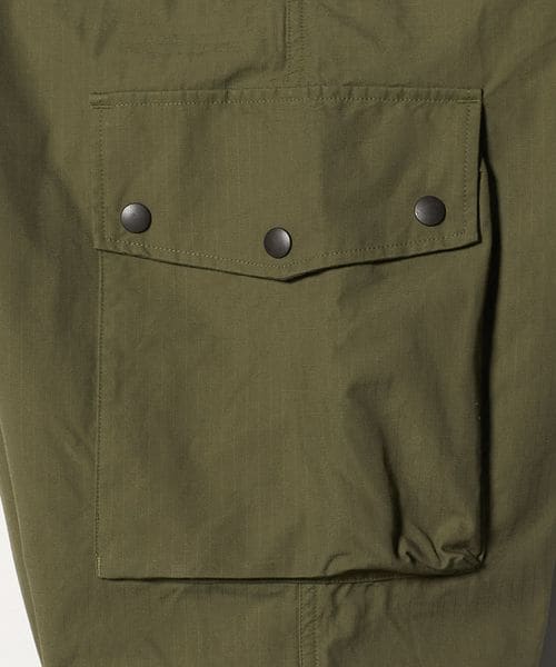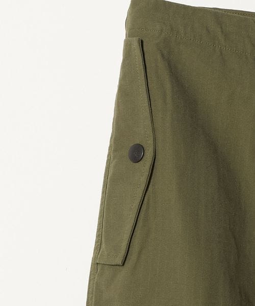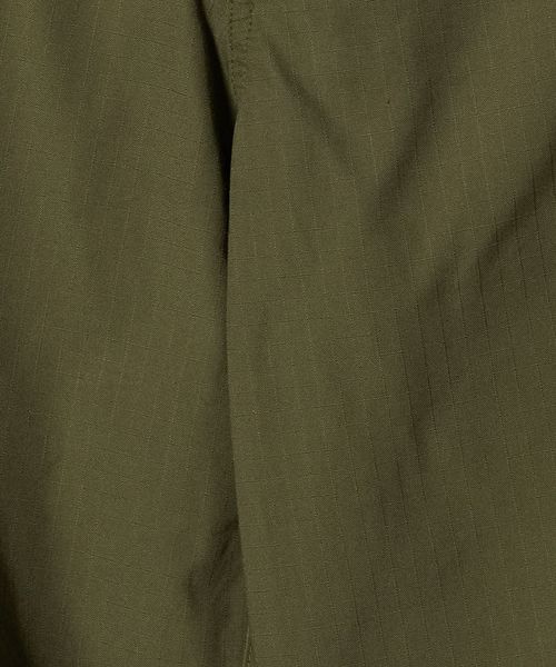 ミリタリーアイテムの定番であるコットンリップストップ素材を使用し、軽やかさとタフさを兼ね備えています。