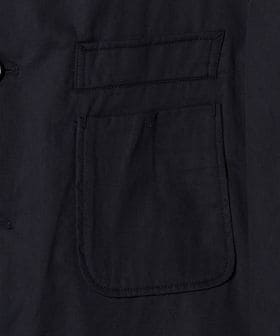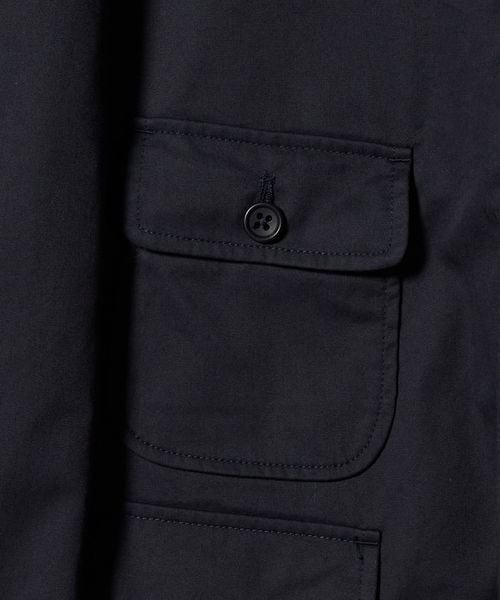 スタンドカラーとフロントに大ぶりのパッチポケットなど多数のポケットを配しているのが特徴的なゆとりあるシルエットのフレンチテイストのワークジャケット。