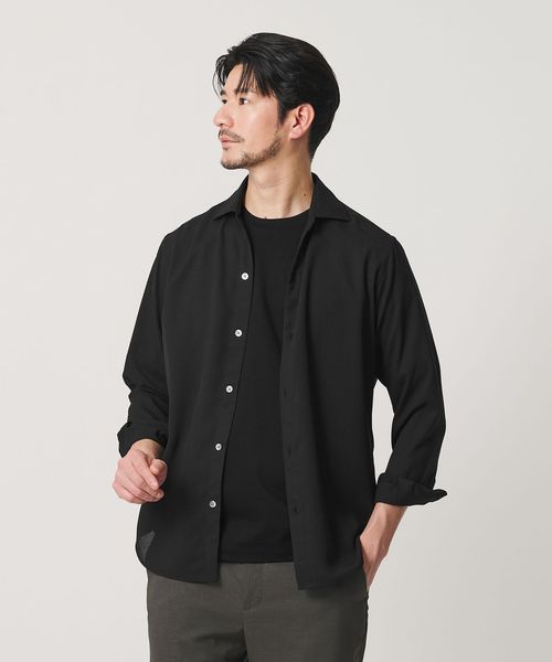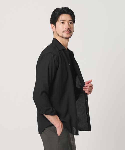 【WEB限定 WARDROBE SMART】リネンライク ワイドカラー スキッパー シャツ