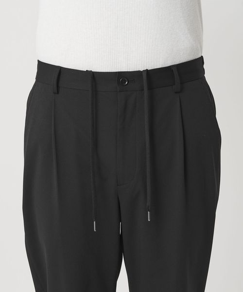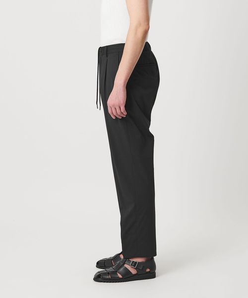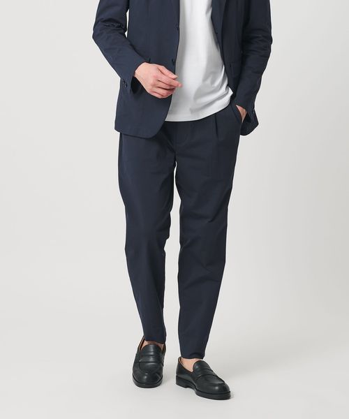 1タック仕様で、ワタリは程よくゆったりと裾にかけてテーパードしたシルエットのセンタークリースがないイージースラックス。