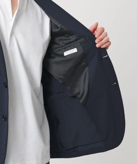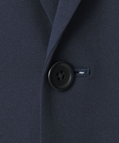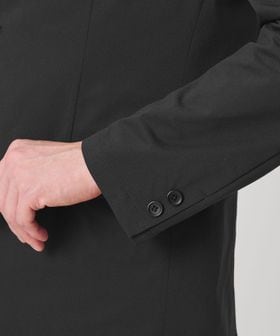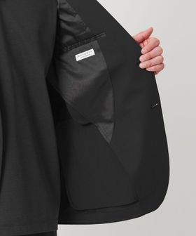 シングル2釦、袖口2釦開き見せ仕様、センターベント、ノッチドラペル、両玉フラップポケット、左右内ポケット付のディティール仕様。