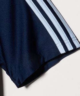 深みのあるネイビーとブラウンを基調にした配色が、大人の都会的なムードを漂わせる〈adidas Originals〉の別注ゲームシャツ。