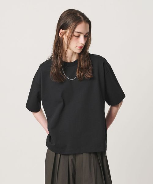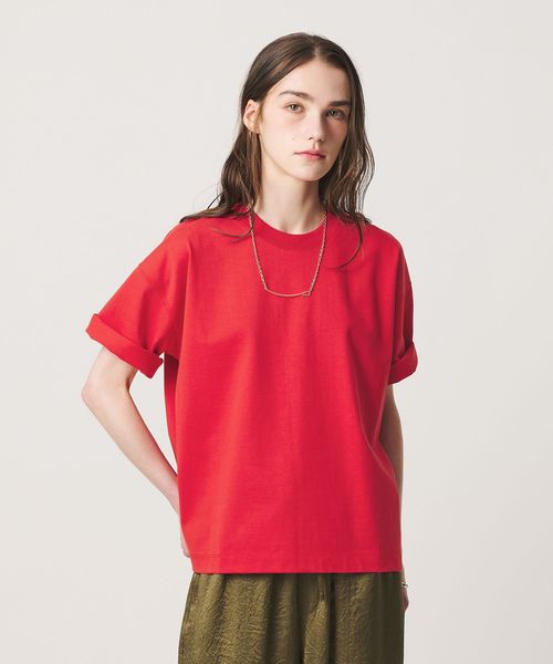 絶妙な着丈でカジュアル過ぎずない印象にまとまる今の気分にフィットするクロップド丈Tシャツです。