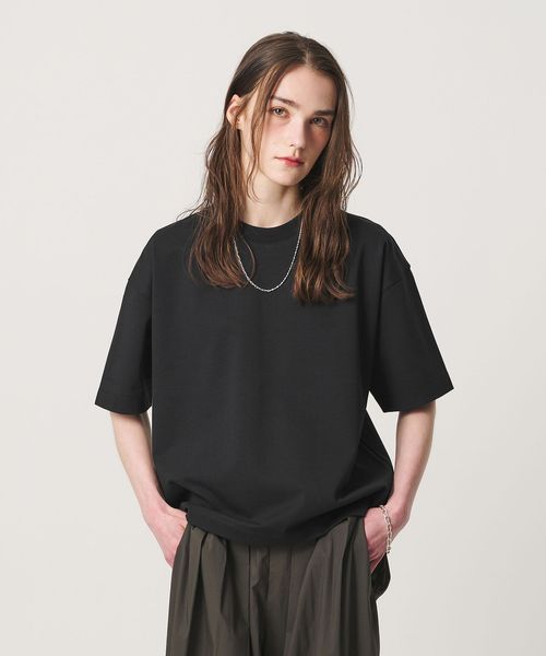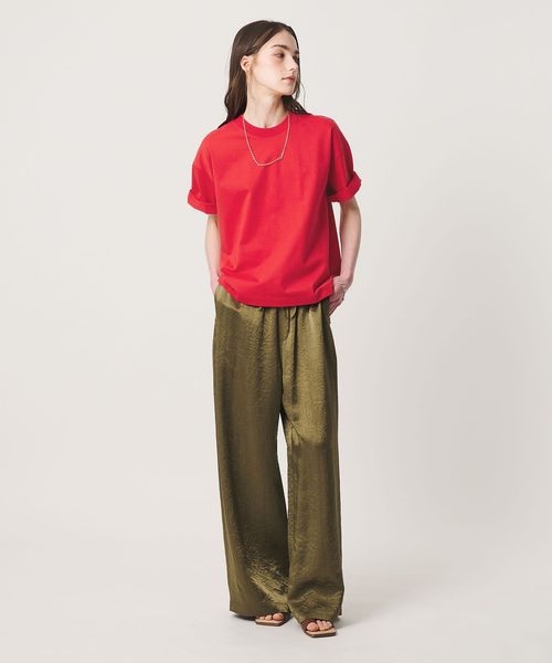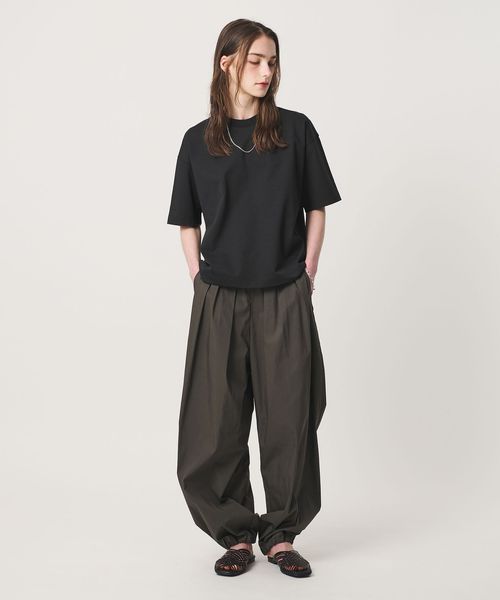 ワイドシルエット気分のTシャツながら裾に向かって絞られたシルエットの為 ルーズになり過ぎず、