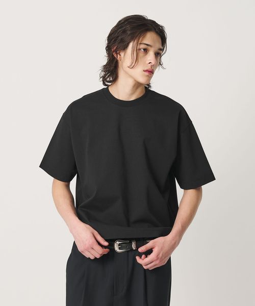 身幅はワイド、裾はレギュラーシルエットのクロップドTシャツ。