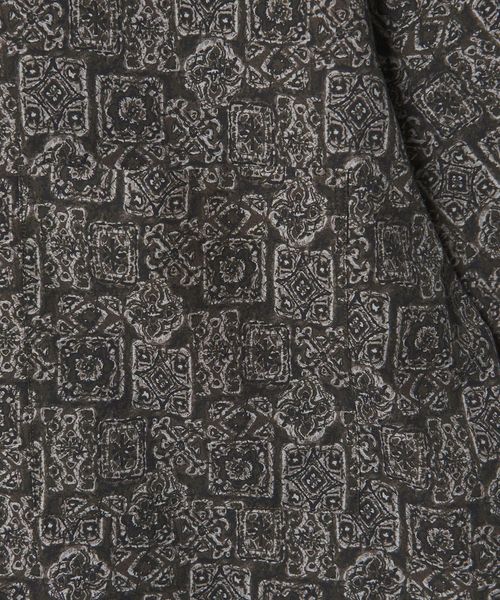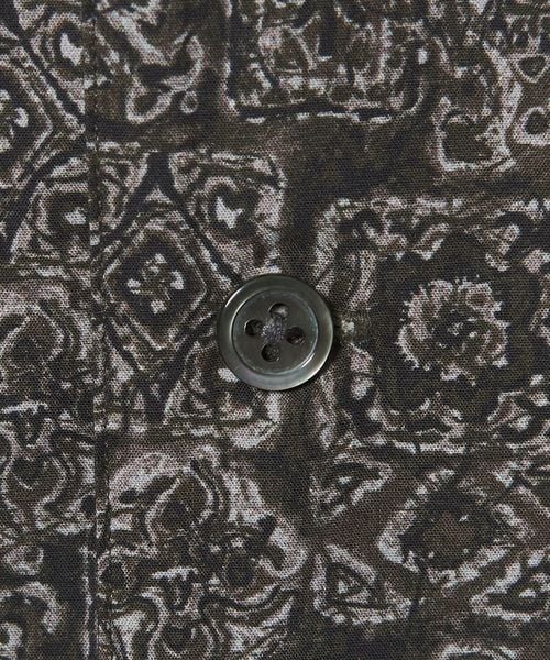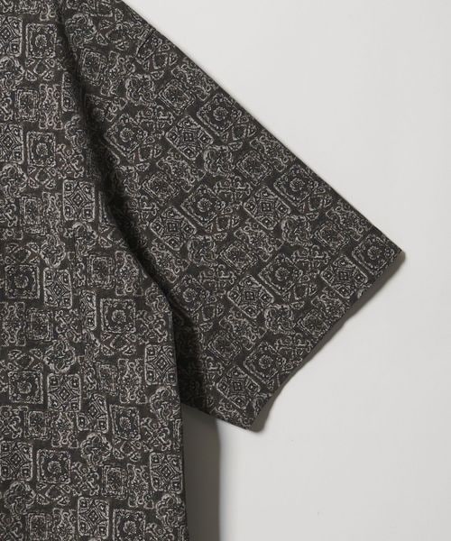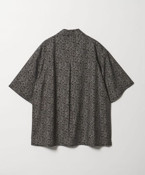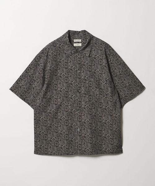 落ち着いたトーンで構成された細やかな総柄が印象的な半袖シャツ。