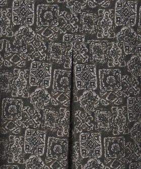 ボーダーのように見える独特の柄行は、どこかエスニックなムードを感じさせながらも、落ち着いたトーンで大人らしく着られるバランスが魅力です。