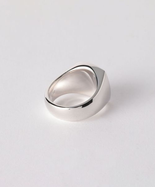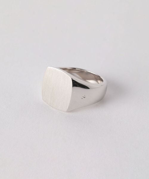 ボリューム感溢れるスクエア型のシグネットリングは、無駄な装飾を排し、ミニマルなデザインが特徴。
