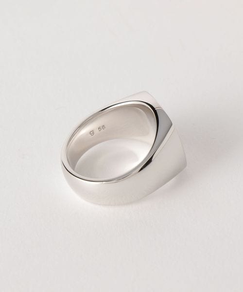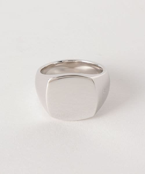 ボリューム感溢れるスクエア型のシグネットリングは、無駄な装飾を排し、ミニマルなデザインが特徴。